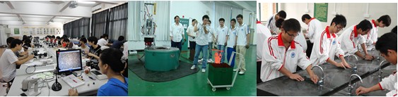机械创新设计实验室及大学生机器人创新基地全天候向学生开放,是学生进行创新设计和参加各种设计大赛的集设计与加工于一体的场所,实验室配备了普通车床,工具磨床,万能工具铣床,摇臂钻床,焊接机,钳工台等,由学生自主管理、操作,进行各种作品设计、制作,调试,教师监督指导。