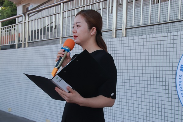 任春雯在国旗下发表讲话。她回顾了我院再过去一年中取得的成绩,希望更多同学向榜样个人以及集体看齐,刻苦学习、努力奋斗、砥砺奋进,成长为德智体美劳全面发展的卓越人才。她强调,作为新时代大学生要懂得居安思危,要勿忘国耻,坚定爱国之情;勇攀高峰,激励强国之志;务实重行,实践报国之行。要让爱国主义情怀广大学生的心中牢牢扎根。