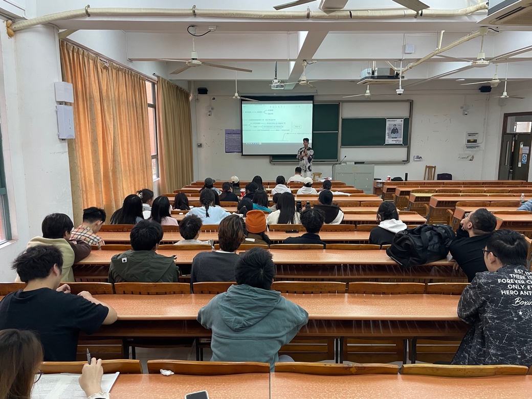 随后,主讲人林泽庞以丰富的行业经验和专业知识,对新媒体平台在产品营销中的关键作用进行了深入浅出的解读,分别从新媒体行业的岗位现状与需求、新媒体背景下产品的推广策略、抖音和小红书两大新媒体平台的推广机制和异同点进行了分享,并结合丰富的实际案例进行讲解,让学生有更深刻的体会。分享内容结束后,现场同学们积极进行提问,林泽庞均进行了耐心的解答。原定两节课的分享会持续了三个小时,会后仍有部分同学前来与两位嘉宾做进一步交流,足见学生们对分享会内容的浓厚兴趣。