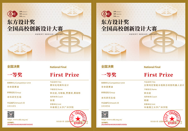 在暑假期间,由张熠和杨颖两位老师指导的2020级学生钟兆钲、冯晓璇、贾蕙硕、黄丽彬组成的团队,凭借作品《模块化地摊车设计》获得团队一等奖。同时,钟兆钲的个人作品《丘陵地区智能水稻联合收割机器人设计》也获得了本科研究生组全国决赛一等奖。获奖学生对此次获奖表示深感荣幸,认为这不仅是对他们努力和付出的认可,也是对他们专业领域追求卓越的激励。学生们特别感谢指导老师的悉心指导,以及大赛组织方提供的高质量平台,让他们得以展示才能。同时,他们对学校和学院的培养和支持表示感激,为他们的学术和个人成长提供了坚实的基础。