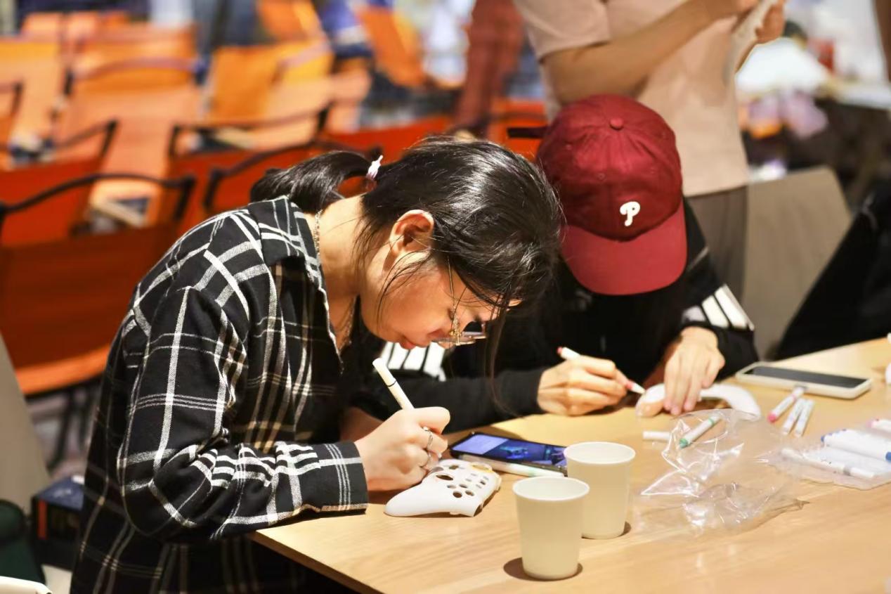李莉林(左一)和朋友一起在TEDx演讲活动中画手柄(李莉林 提供)