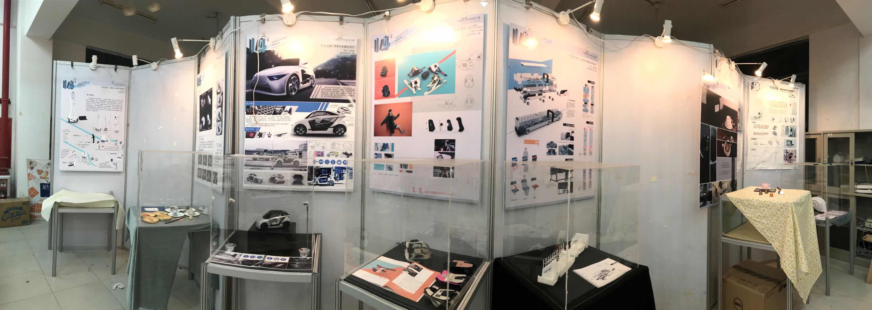 工业设计毕业设计作品的展出更是精彩,其包含了大四学子四年所学的精华与感悟。其中的作品包括的种类方向有:家具设计,电子电器产品,室内设计,视觉传达,汽车概念设计等。种类丰富,思想异彩纷呈。虽然14级的学生不是很多,但是想法从来不少。每一个毕业设计作品都会有制作者本人设计属于自己的展位,这同时体现出了其空间规划能力。