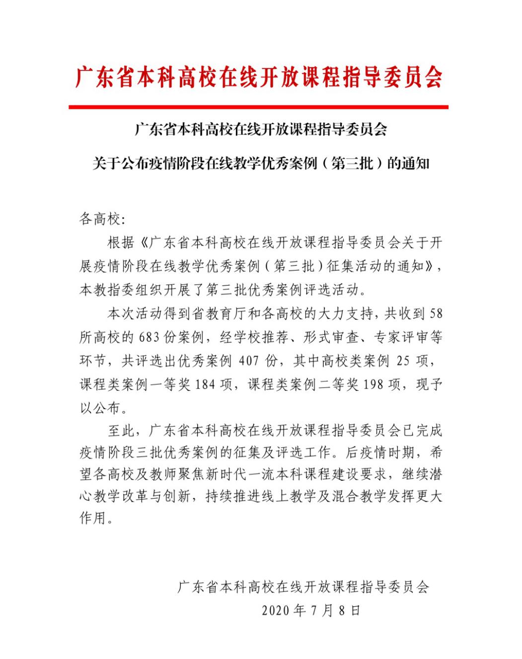 图1 关于公布疫情阶段在线教学优秀案例通知