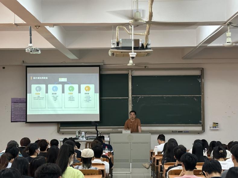 最后全国鞋服饰品产教融合联盟副秘书长彭滔向学生分享了自己从手绘入门到获得设计竞赛大奖的蜕变过程,同时介绍了自己在韩国读博的经历,鼓励学生坚持手绘,坚持参加各种设计竞赛和项目,抱有持之以恒的心态对待专业学习。一个半小时的讲座不仅让同学们学习到了表现技法,也大大拓宽了对设计思维模式的认知。