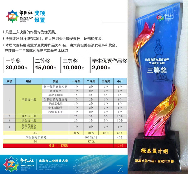 本网讯(记者 梁文峻)为贯彻中共广东省委、广东省人民政府发布的《关于高质量建设制造强省的意见》,聚焦珠海市 “4+3”重点产业集群,促进工业设计与制造业深度融合的精神,6月30日,伟德国际betvlctor1946/伟德国际betvlctor1946在由珠海市工业和信息化局主办,广东省工业和信息化厅指导,广东省工业设计协会、珠海市工业互联网协会、市内外相关行(专)业的科研机构、社会组织及高等院校等单位承办的第七届珠海市市长杯工业设计大赛中荣获三等奖。